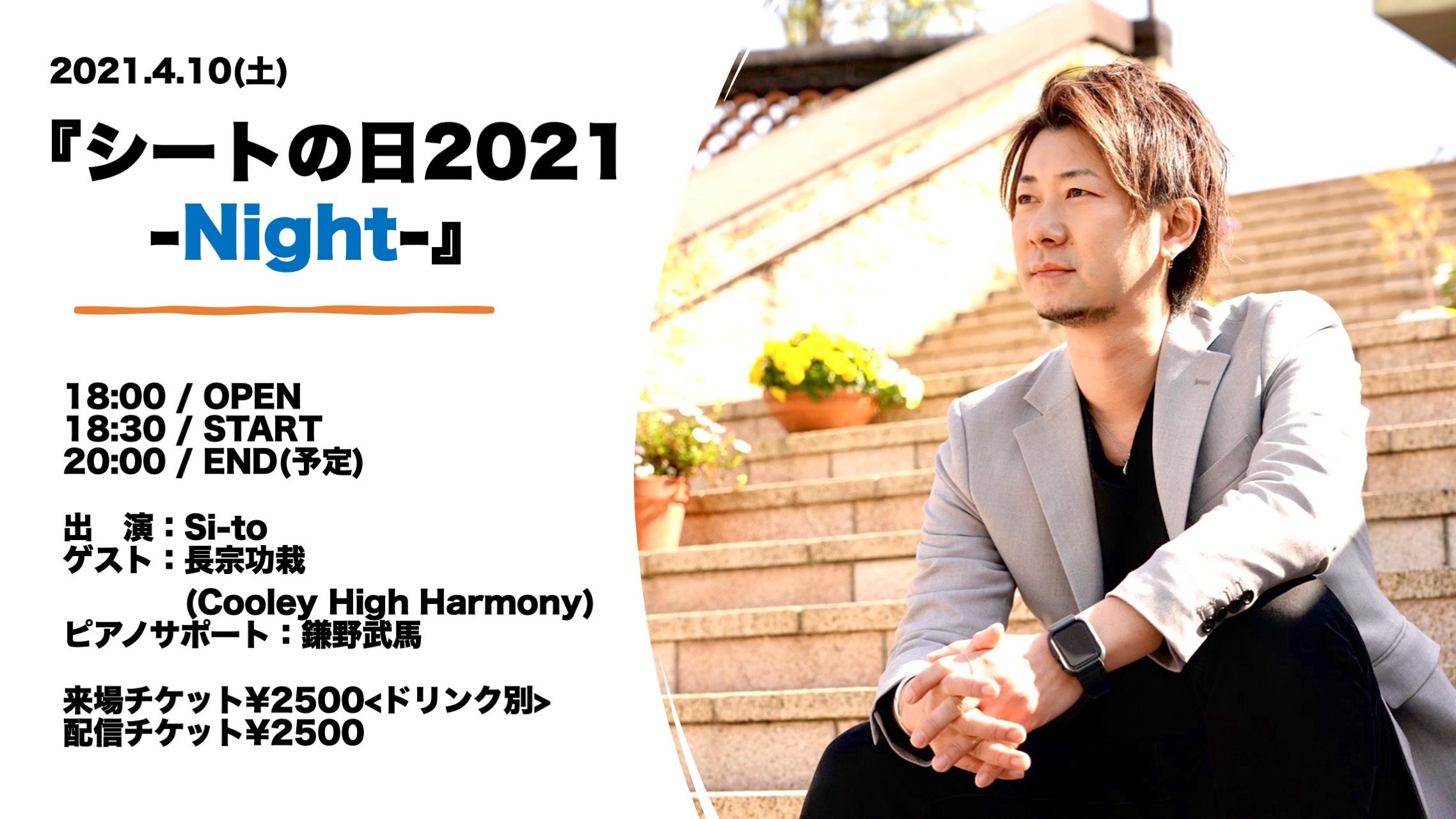 前売 3,000円(1Drink別途500円・自由席・最大50名)